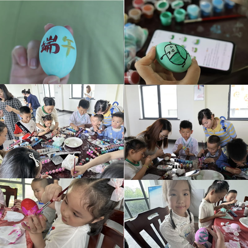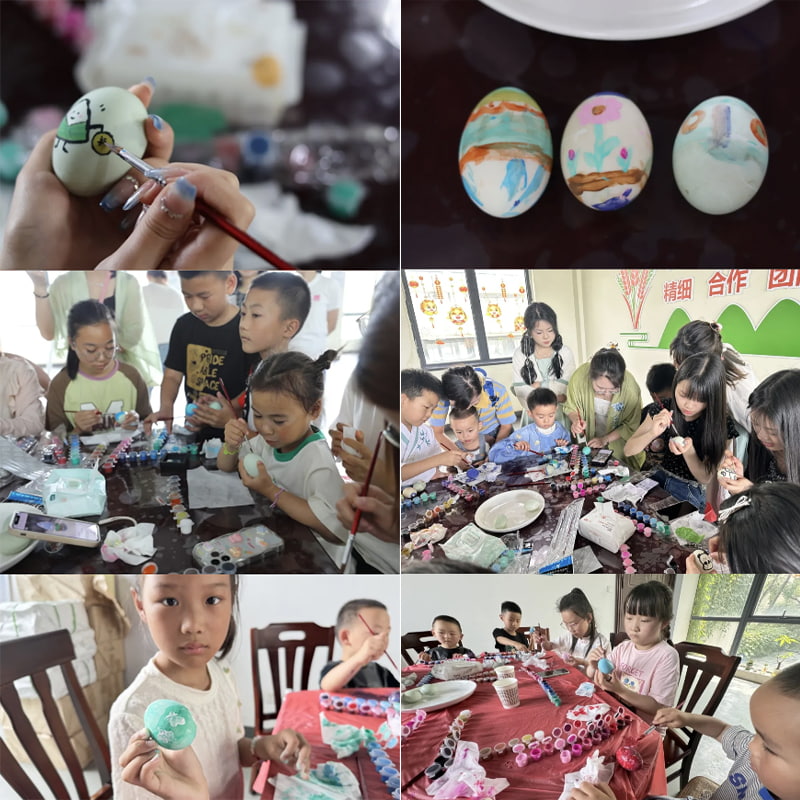 Företaget förberedde noggrant läckra saltade ankägg, färgglada färger och delikata penslar för barnen, så att barnen kunde måla glädjen och nöjet i sina hjärtan.