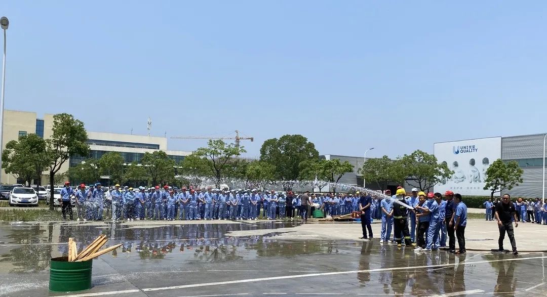 Juni i år är den 20:e "Safety Production Month" i landet, med temat "Implementing Safety Responsibilities and Promoting Safe Development". För att förbättra säkerheten och släckningskvaliteten, säkerhetsförebyggande och självräddningsförmåga hos all personal genomförde Uniquality Care & Kingsafe i morse en brandberedskapsövning med hjälp av brandstationen i utvecklingszonen.
