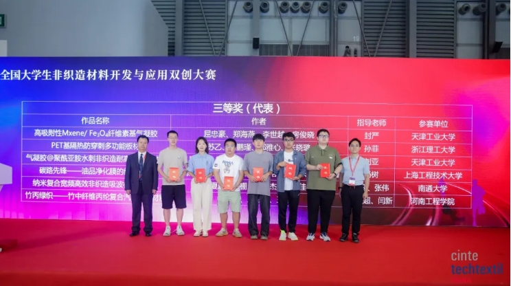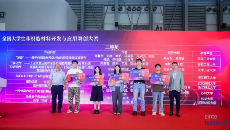 Li Lingshen, vice ordförande för China National Textile and Apparel Council, Liang Pengcheng, vice ordförande för China National Textile and Apparel Council och verkställande vice ordförande för Textile Industry Branch of China Council for the Promotion of International Trade, Ni Yangsheng, president för China Textile and Apparel Education Society, Li Guimei, ordförande för China Industrial Textile Industry Association, Qian Xiaoming, chef för Nonwovens Materials and Engineering Underkommitté för Textile Professional Teaching Steering Committee för högskolor och universitet vid utbildningsministeriet, professor vid School of Textile Science and Engineering vid Tianjin Polytechnic University, Zhu Feichao, biträdande chef för Discipline Construction Department vid Zhejiang Sci-Tech University, Yu Lan, biträdande sekreterare för School of Textile and Apparel Engineering vid Soochow University, Yan Yan, vice ordförande för Zhejiang Kingsanda Group Co., Ltd., Zuo Hongyun, ordförande i Jiangsu Baijiali New Material Technology Co., Ltd., Chen Hua, generaldirektör för Henan Yixiang Health Technology Co., Ltd., Shan Lei, marknadschef för Xiamen Dangsheng New Materials Co., Ltd., och andra ledande gäster, såväl som de prisbelönta studenterna i denna tävling, lärare och studentrepresentanter från de deltagande universiteten deltog prisutdelningen. Mötet leddes av professor Feng Yan från Tianjin Polytechnic University.