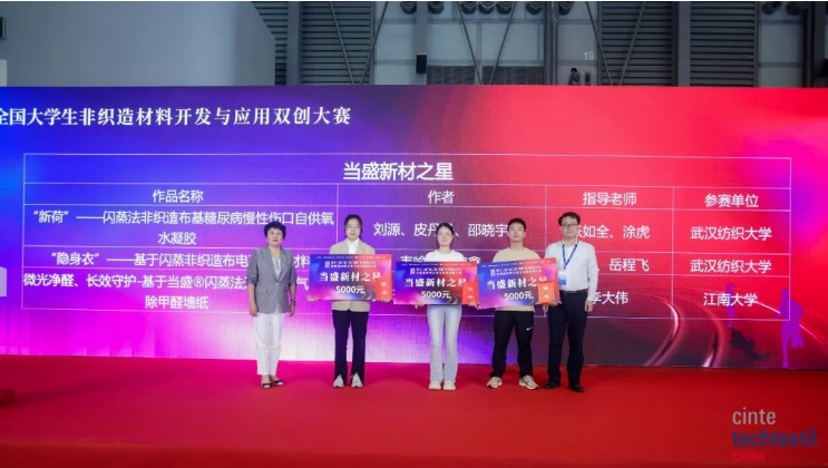 Efter expertgranskning tilldelades den 12:e "Jinsanfa · Dangsheng" Cup National College Students Nonwovens Development and Application Entrepreneurship and Entrepreneurship Competition 1 specialpris, 2 förstapriser, 3 Dangsheng New Material Stars (samma nivå som förstapriset), 3 Baijiali Design Stjärnor (samma nivå som förstapriset), 9 andrapriser och 44 tredje priser.