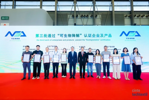 Vid mötet utfärdade Sun Ruizhe, ordförande för China National Textile and Apparel Council, och Li Lingshen, vice ordförande för China National Textile and Apparel Council, certifikat till representanterna för den tredje omgången av företag som klarade certifieringen "biologiskt nedbrytbar".
