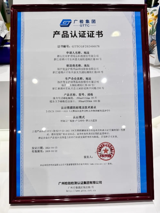 På den första dagen av CINTE24 hölls den tredje omgången av "biologiskt nedbrytbara" certifierade företag och produktutgivningsceremonin på Shanghai New International Expo Center. Kingsafe Group & Youquan Co., Ltd. har aktivt främjat den hållbara utvecklingen av industrin, fungerat som vice ordförande i Green Development Innovation Alliance of the Nonwovens Industry, och det våta toalettpappret som utvecklats och lanserats har passerat "biologiskt nedbrytbart "-certifiering, som har bevittnat utforskning och innovation av branschen för att främja grön utveckling.